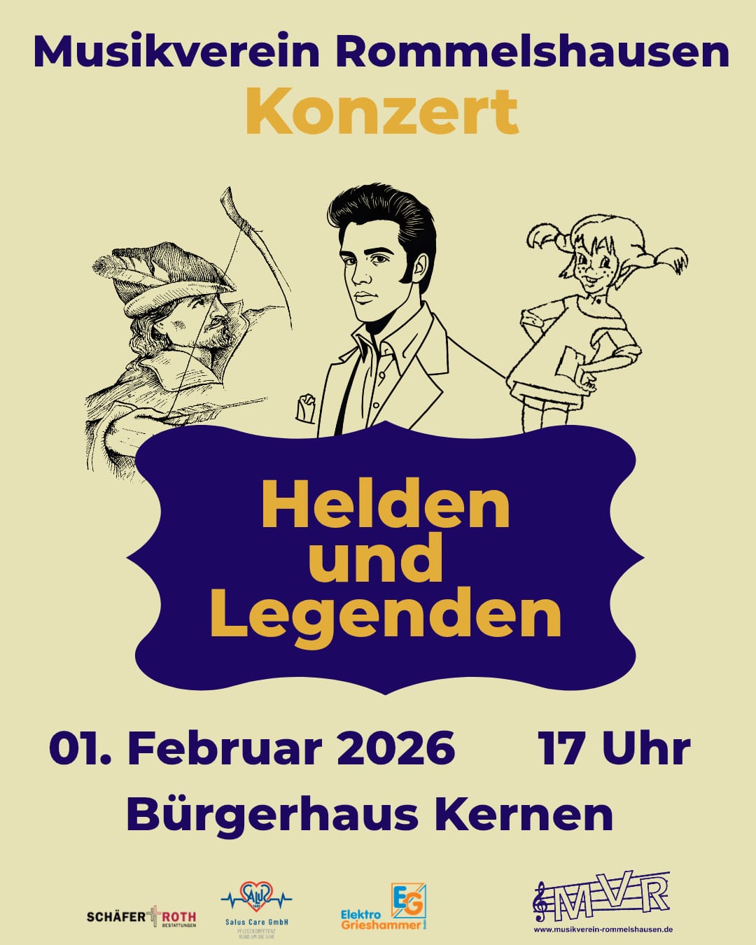 Erleben Sie einen musikalischen Abend der Extraklasse, wenn der Musikverein Rommelshausen zu seinem Jahreskonzert 2026 einlädt! Unter dem mitreißenden Motto "Helden und Legenden" präsentiert der Musikverein ein vielseitiges Programm, das Sie auf eine klangvolle Reise durch epische Erzählungen und heldenhafte Taten mitnimmt. Freuen Sie sich auf bekannte Melodien und beeindruckende Arrangements, die die Geschichten von […]